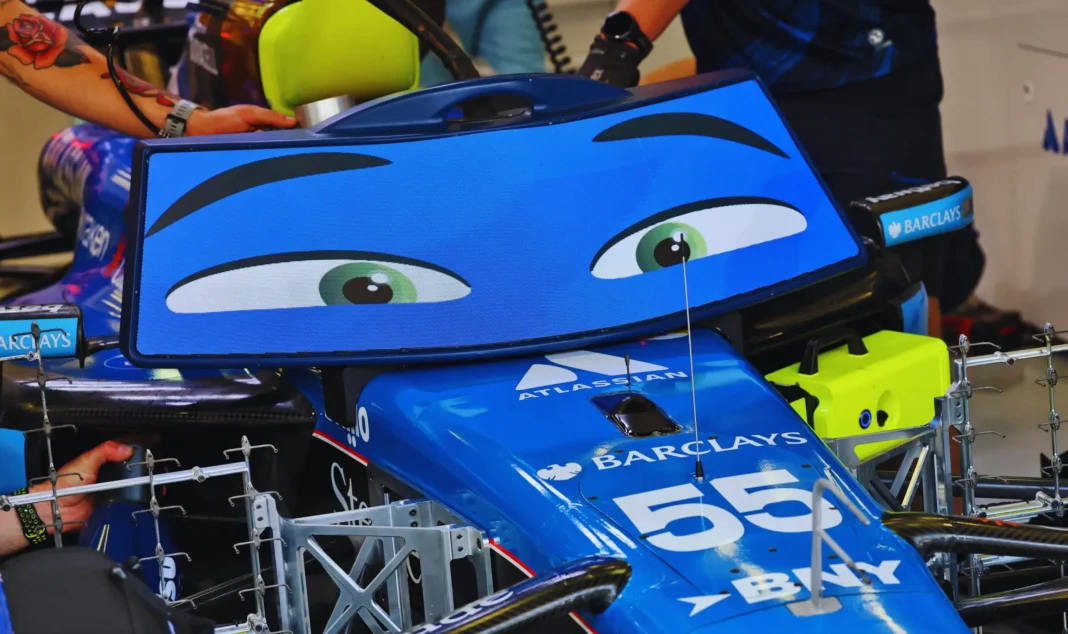 Mas enquanto Vowles estava ocupado a avaliar os aspectos técnicos do carro, uma estrela inesperada emergiu das sombras—um monitor inovador na garagem da Williams! Tradicionalmente utilizado para exibir dados cruciais e transmissões ao vivo para os pilotos, este monitor em particular foi transformado numa atração amigável para os fãs. O monitor agora apresenta um par de olhos animados que piscam e se movem, cativando tanto os pilotos como os fãs. “Estamos sempre à procura de formas de inovar e ultrapassar os limites na forma como nos conectamos com os fãs, e estas novas telas são um exemplo disso,” afirmou um porta-voz da equipa, acrescentando: “Estamos satisfeitos por terem gerado tanto interesse e esperamos mostrar o que mais podem fazer.”