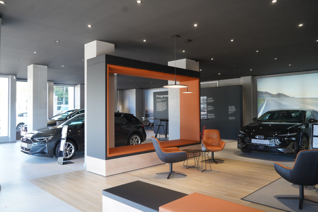 Para tal, este novo espaço proporciona uma experiência imersiva com os produtos, os serviços e valores da Audi, através de um ambiente, em que sofisticação, tecnologia e design convergem para proporcionar uma experiência verdadeiramente premium. Tal como no pioneiro, em território português, o Audi City Lisbon exibe uma arquitetura moderna e acolhedora, desenhada para proporcionar uma jornada fluída e intuitiva. A par da aposta em materiais de elevada qualidade, em iluminação envolvente, e em mobiliário inovador, elementos como a mesa de boas-vindas “Nexus”, ou a “Library” (um espaço central, dedicado à consultoria personalizada), integram um novo modelo de atendimento, em que os tradicionais balcões dão lugar a zonas de interação, pensadas ao detalhe para tornar a visita memorável.
