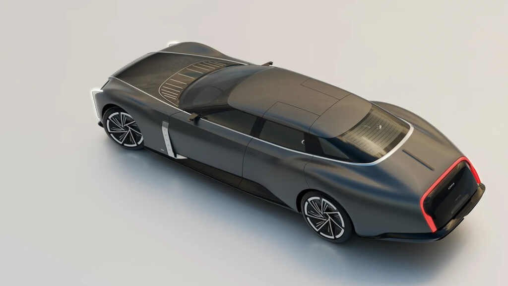 Conceitos de identificam bem os potenciais destinatários de um automóvel deste género, e a aparência exterior é, desde logo, prova disso mesmo: capot extremamente longo, habitáculo recuado, secção traseira a remeter para o mundo da náutica de recreio. A grelha de dimensões quase majestáticas foi concebida mais como um elemento arquitetónico, também ele, ao estilo Art Déco, do que funcional; as janelas almejam transmitir uma noção de superfícies contínuas e urbanas; os faróis dianteiros verticais, por LED, emitem uma luz cor de champagne; as jantes com nada menos do que 30” tornam este protótipo com 7,9 m de comprimento ainda mais imponente.
