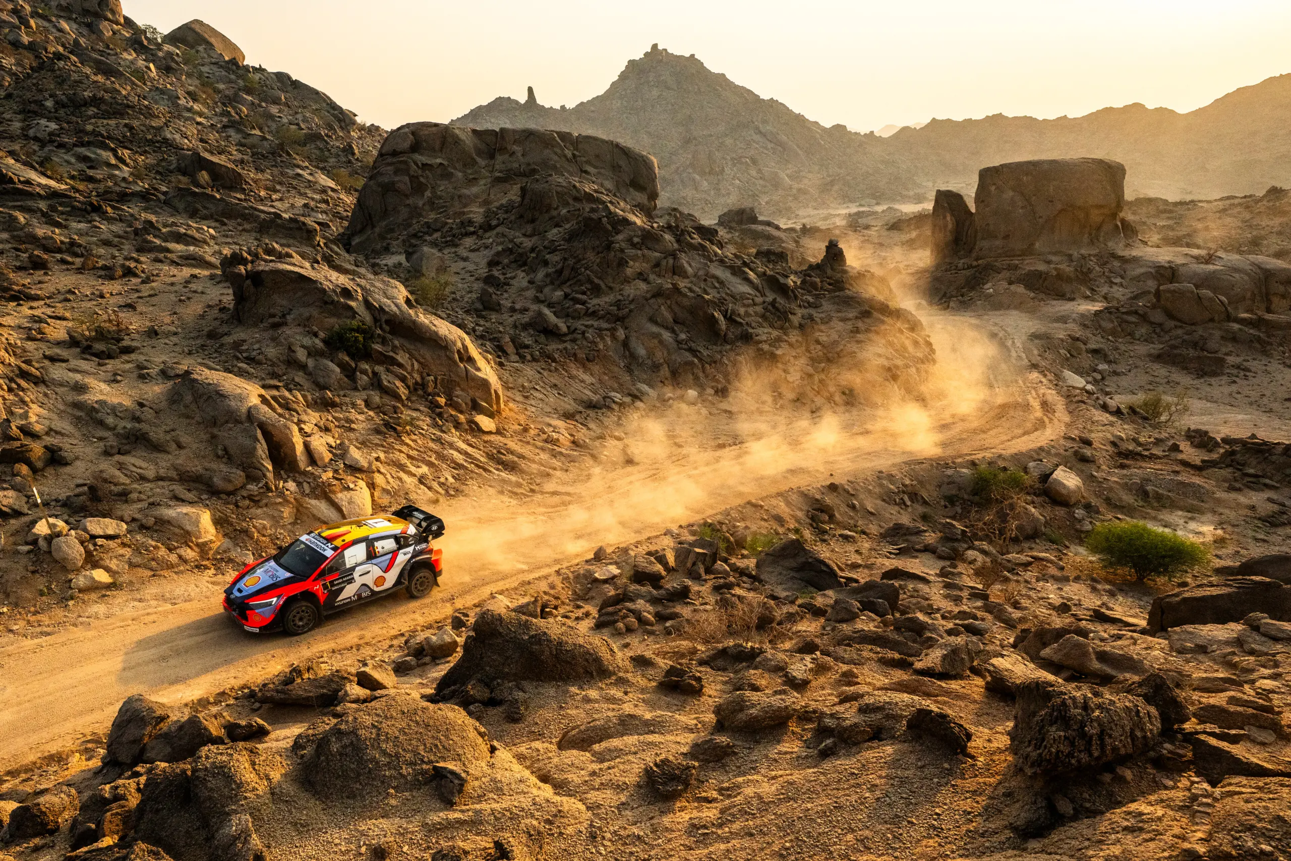 Die unvorhersehbaren Bedingungen der ersten Rallye Saudi-Arabien verwandelten die letzte Runde in eine wahre Lotterie. Die tückische Mischung aus sandigem Wüstengelände und felsigen Wegen richtete Chaos unter den Titelanwärtern an und führte zu einer Reihe von Reifenpannen, die nahezu jeden Fahrer im Rally1-Feld plagten. Ogier hingegen meisterte die frühen Etappen mit Geschick und konnte sich auf den siebten Platz setzen, während Rovanpera mit einer Panne zu kämpfen hatte, die ihn zurückwarf.
