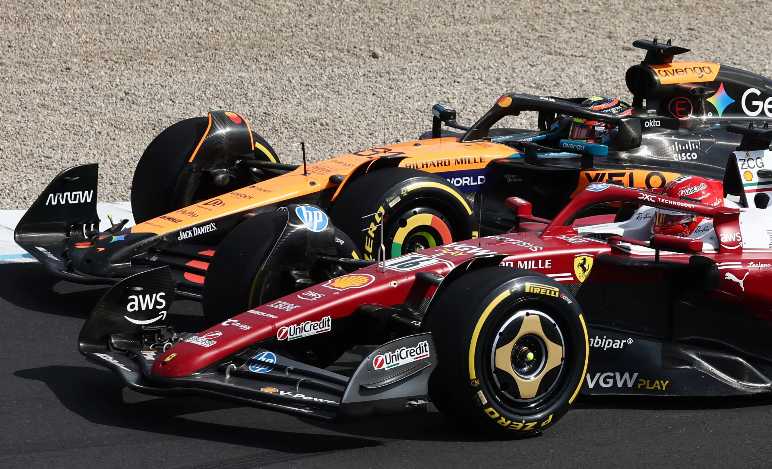 Formula One F1 - Italian Grand Prix - Autodromo Nazionale Monza, Monza, Italy - September 7, 2025 McLaren's Oscar Piastri and Ferrari's Charles Leclerc in action during the race REUTERS/Jakub Porzycki