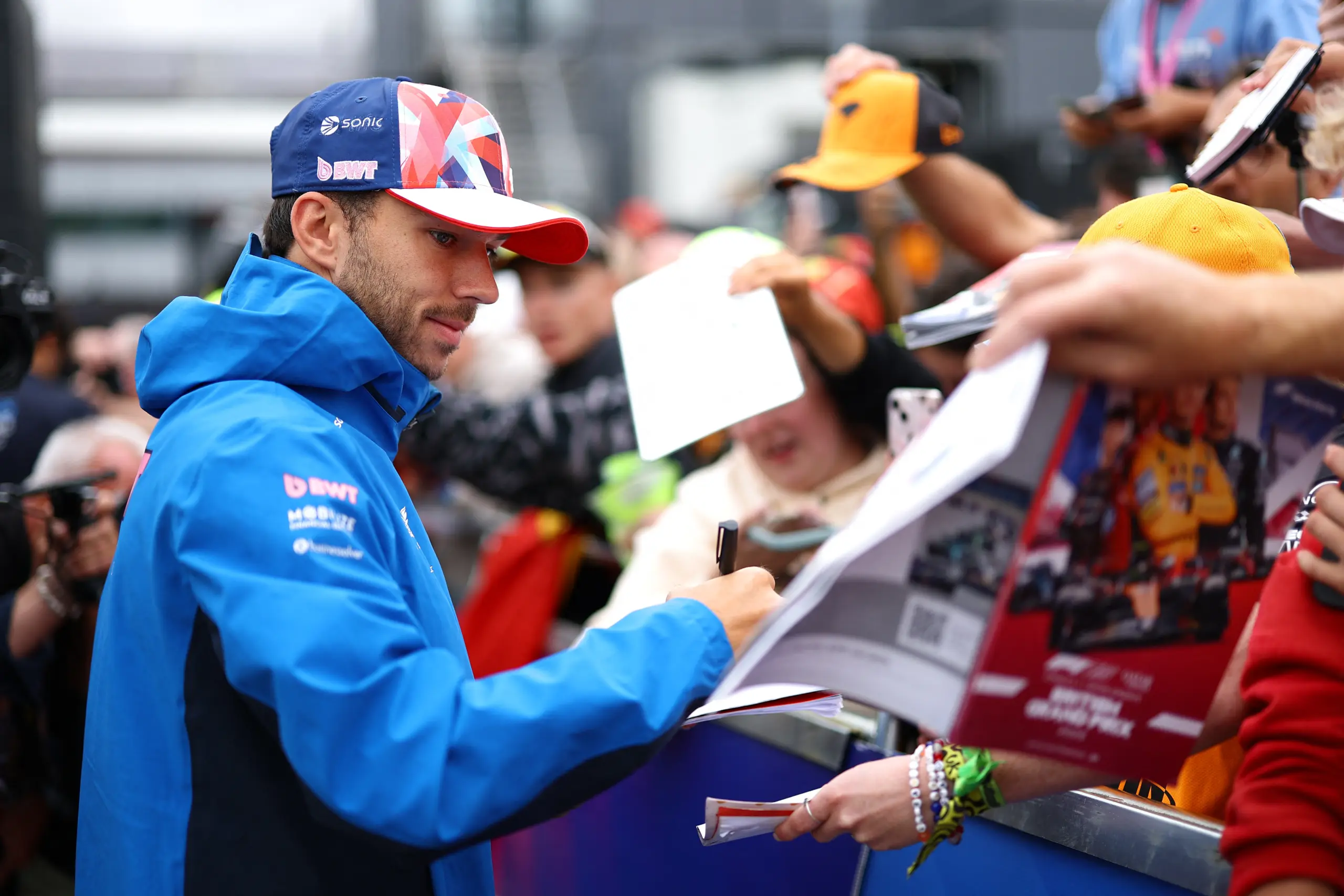 Formula One F1 - British Grand Prix - Silverstone Circuit, Silverstone, Britain - July 5, 2025 Alpine's Pierre Gasly signs autographs for fans ahead of practice REUTERS/Andrew Boyers