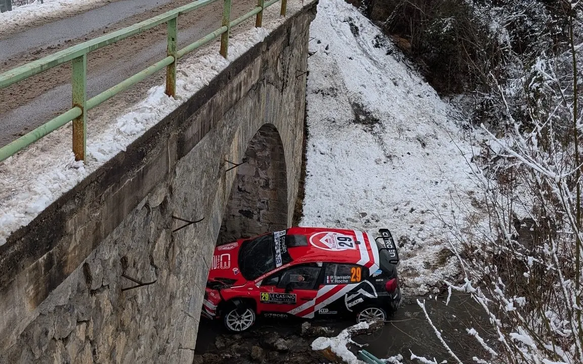 Pablo Sarrazin suffered a spectacular crash on the twelfth stage of the Monte Carlo Rally. On a tricky section, the driver went off the road violently, ending his run in dramatic fashion. Fortunately, the crew escaped with only minor injuries.