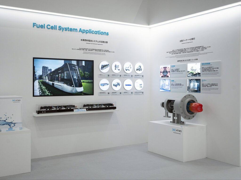 A exposição incluiu também várias tecnologias integradas na plataforma HTWO, nomeadamente soluções de abastecimento de hidrogénio — incluindo um conceito de estação modular — bem como aplicações em transporte ferroviário, autocarros, camiões e sistemas de célula de combustível. Foi ainda demonstrado um robô automático para carregamento de hidrogénio.