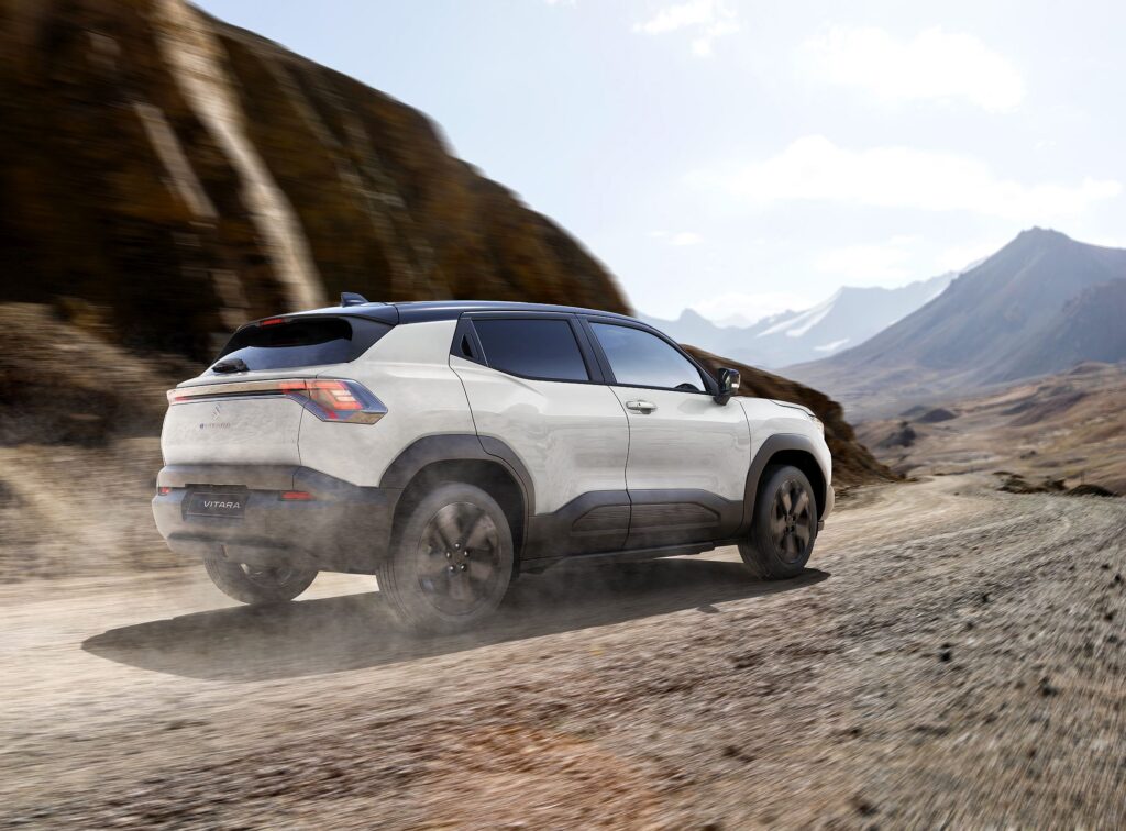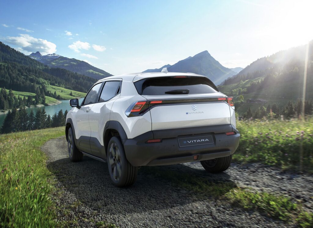 O Suzuki e Vitara, mesmo sendo sempre animado por motorizações elétricas, não renuncia à orientação aventureira, tanto da marca, como do Vitara, facto que é um ponto a favor do novo SUV do construtor japonês. Com 4275 mm de comprimento, 1800 mm de largura, 1635 mm de altura, e uma distância entre eixos de 2700 mm, posicionando-se num segmento cada vez mais concorrido, como é o dos B-SUV.